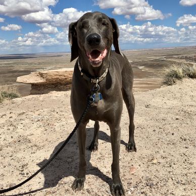 Lilo was a Weimaraner and the LO to our la. She was our high-maintenance love bug. At the end of the day, she turned into a 70lb lap dog. She is the reason we started Lola D's Dog Treats. Her allergies and sensitive stomach caused us to stop buying treats from the big box stores and start creating our own. Our grain-free Apple & Carrot Dog Treats and wheat-free Banana Blueberry Turkey Bacon Dog Treats are made with dogs like her in mind. Lilo took a trip over the Rainbow Bridge right before her 12th birthday in April 2023. She will forever be a part of this business.
